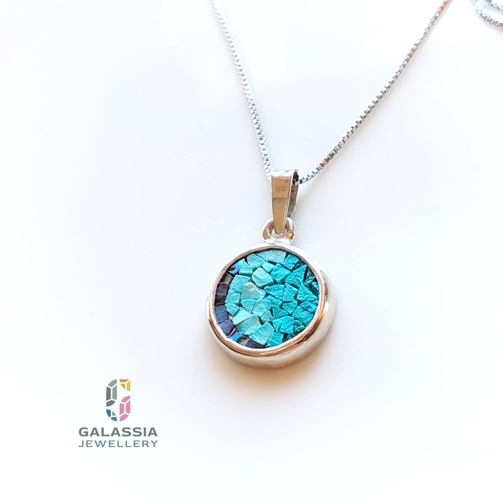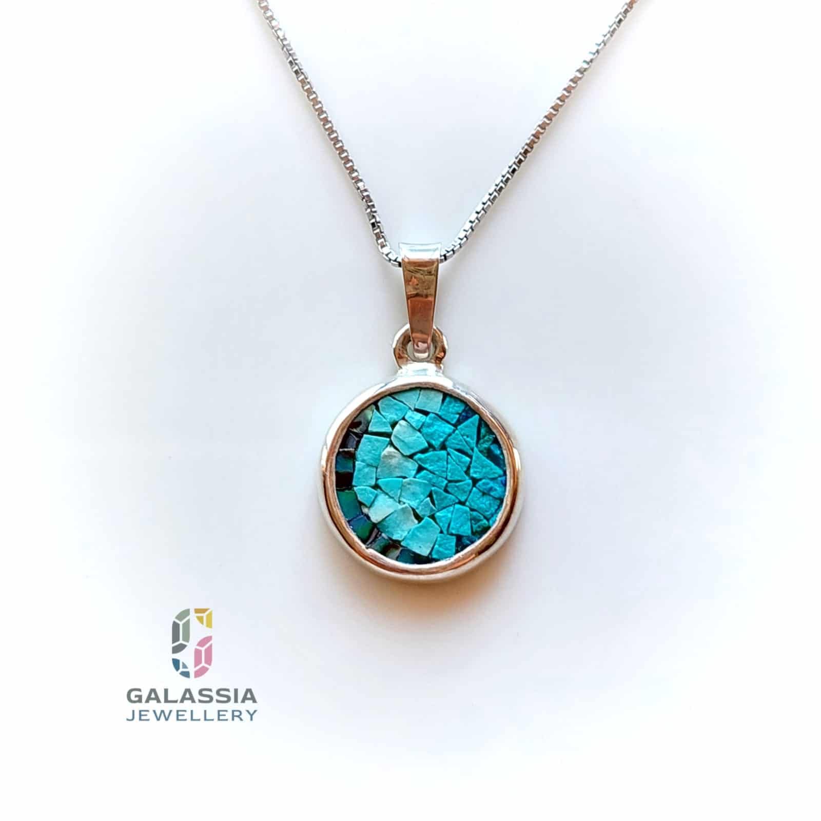 Cami Blue Round Necklace 925 crafted with precision and featuring a stunning micro mosaic design. A sophisticated addition to your jewelry collection, blending classic style with modern artistry.