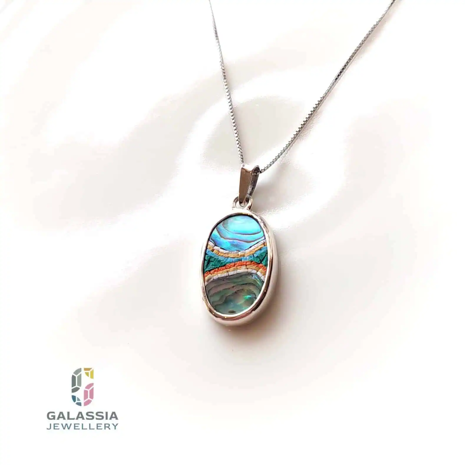 Our micro-mosaic pieces are crafted by stacking stones tightly without gaps, using a specialized adhesive, and securing them in a silver frame for extra durability.