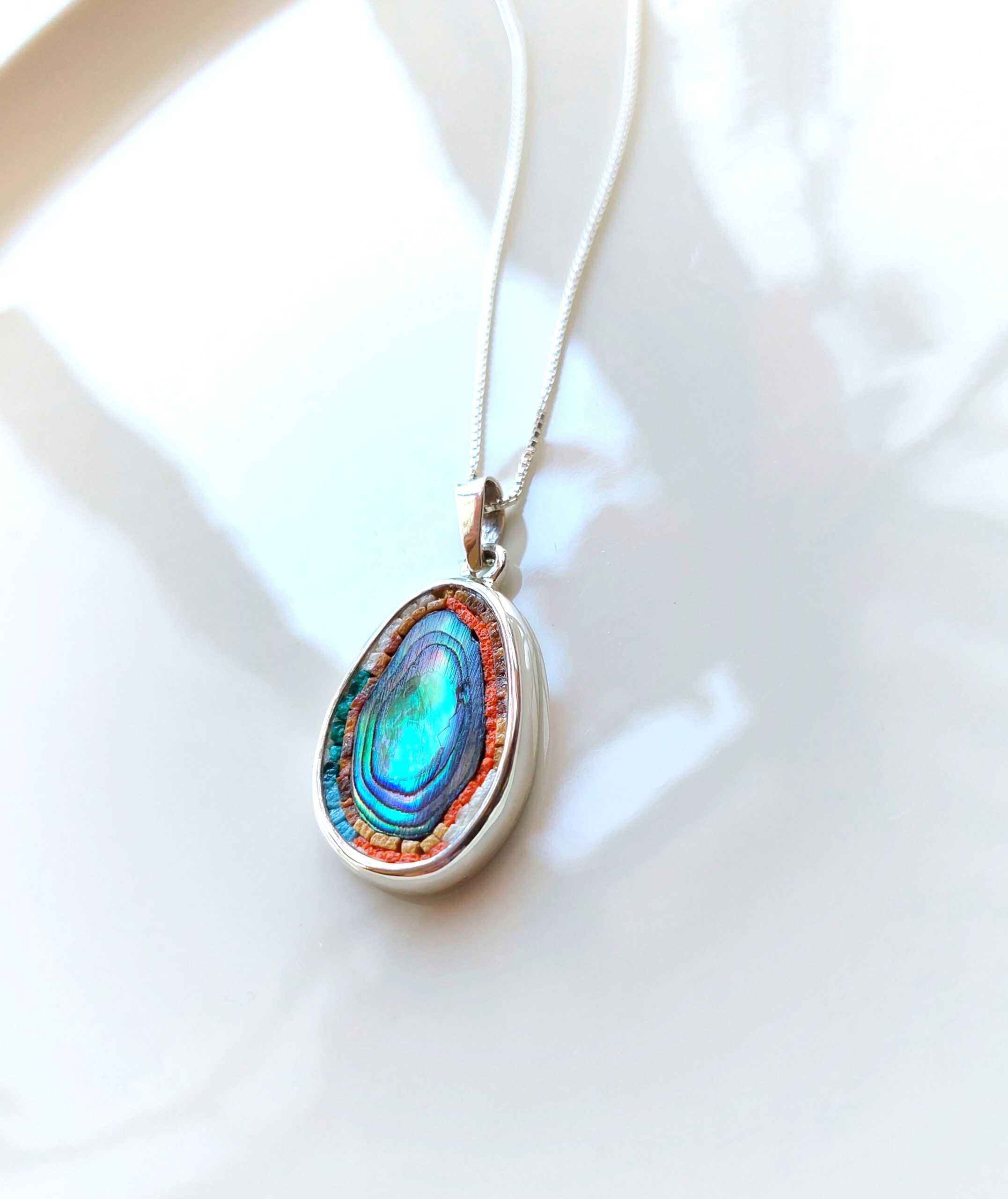 (seashell and Eilat stone) This design was inspired by an idea suggested by one of Galassia friends from Mauritius, and it expresses the picturesque nature on the island of Mauritius.