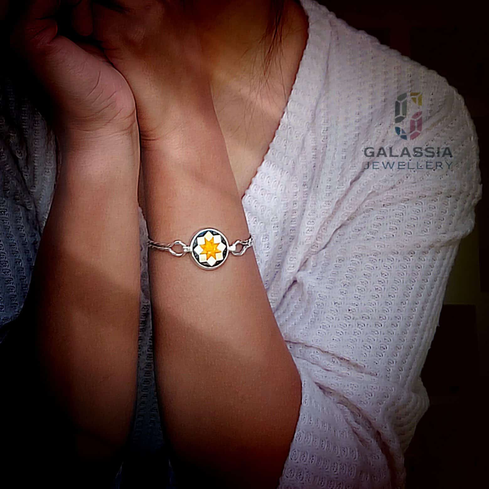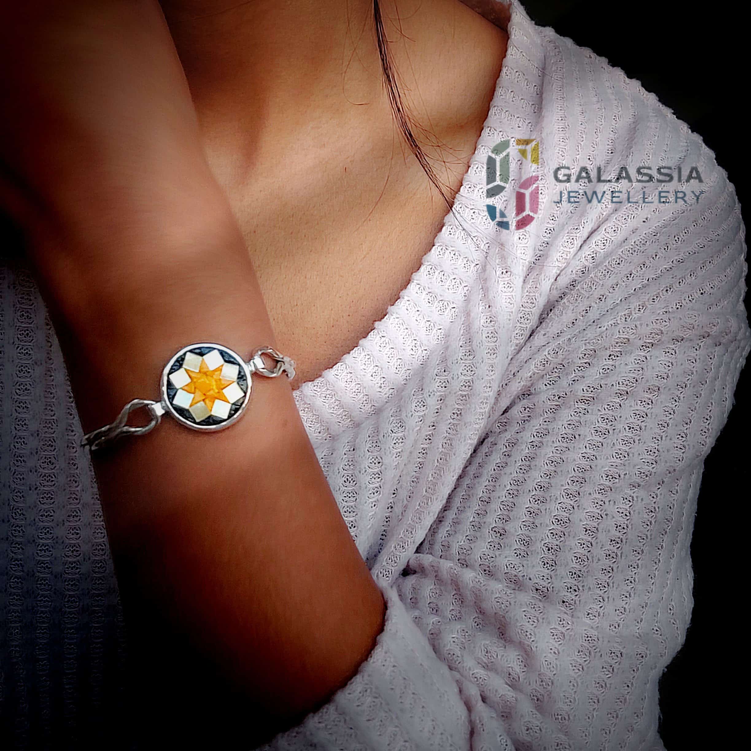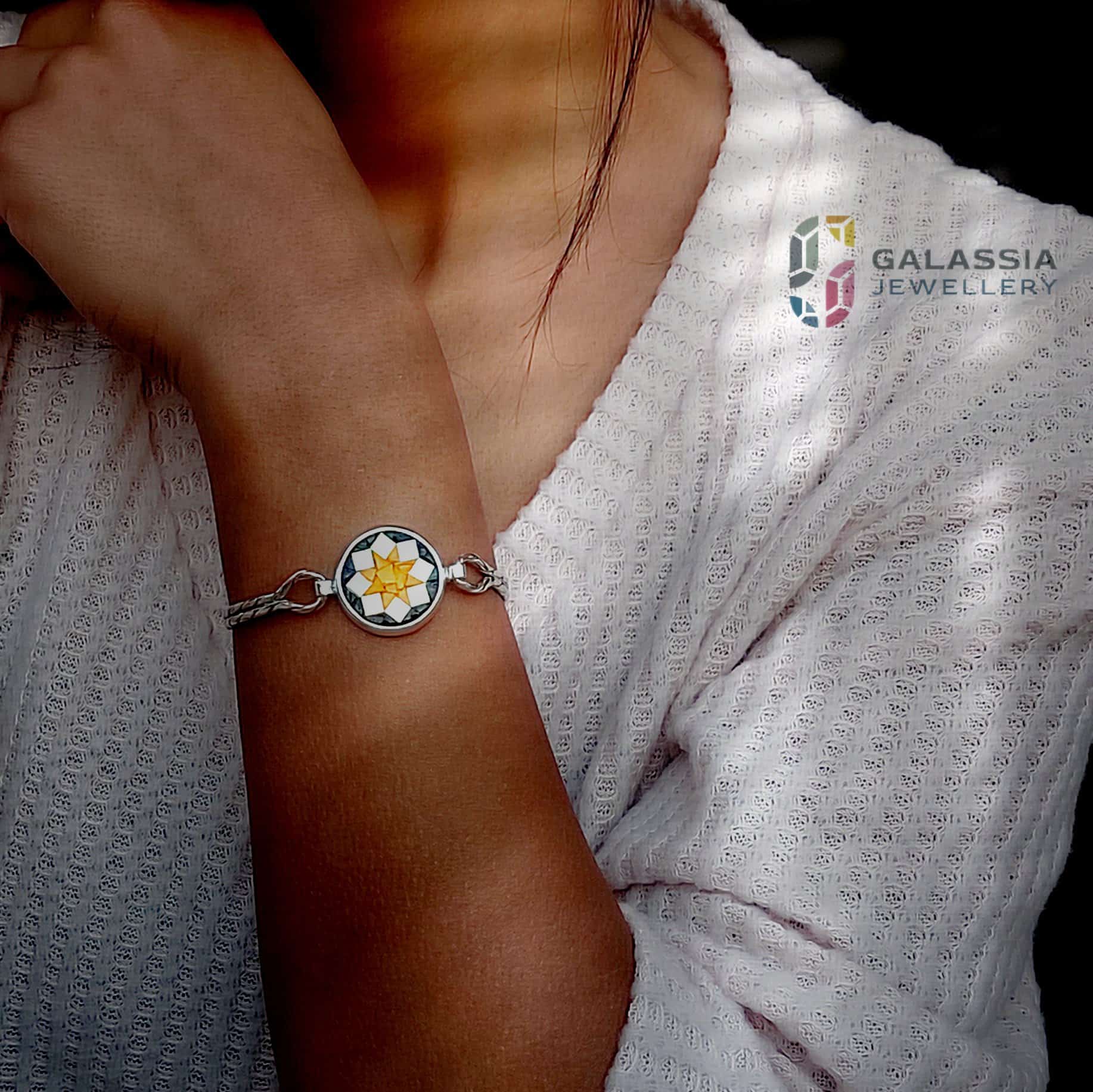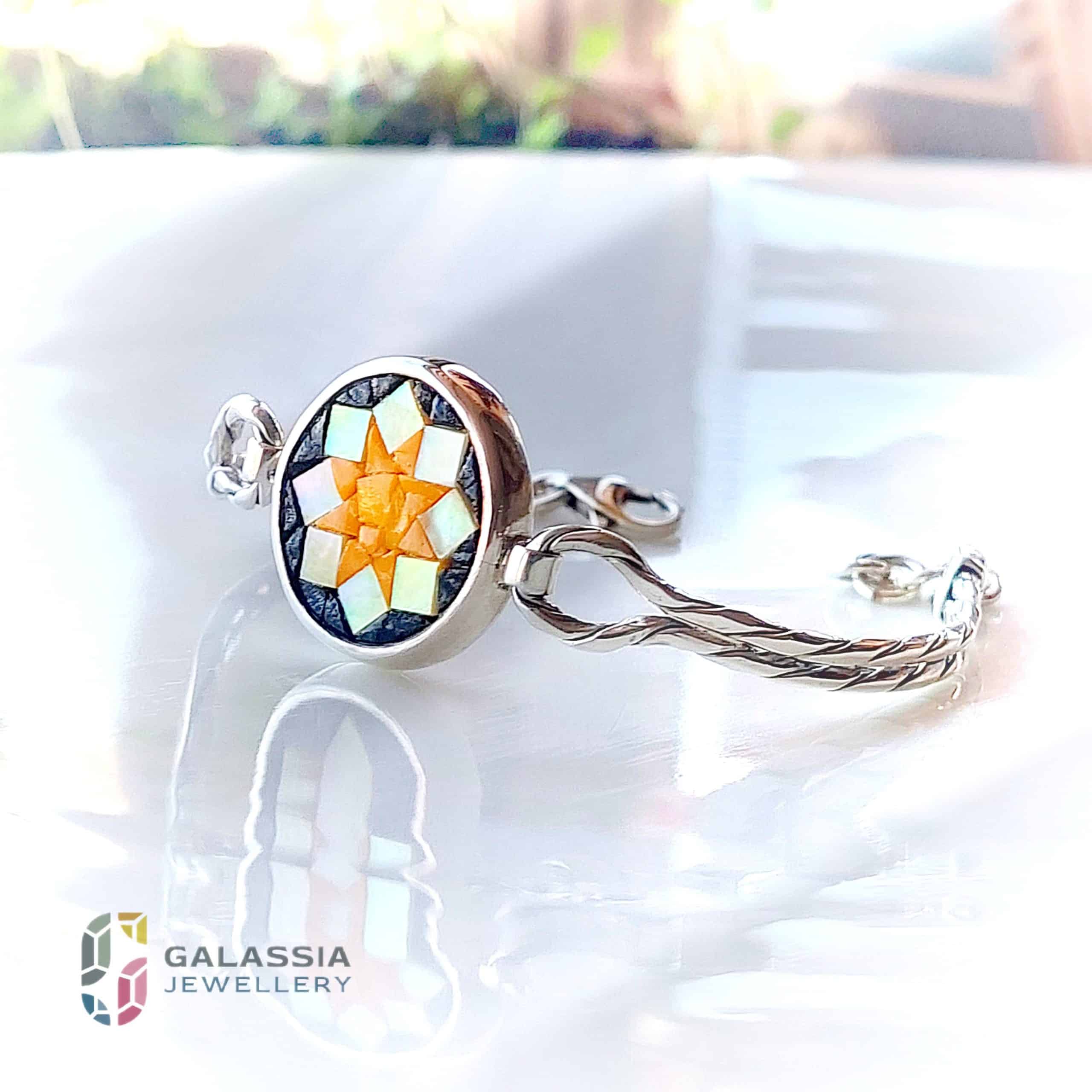 This distinctive piece was created by the artists of Galassia Jewellery using the micro-mosaic technique, where the unique Geometric Design Bracelet – A Perfect Balance of Art and Engineering with Micro-Mosaic Art