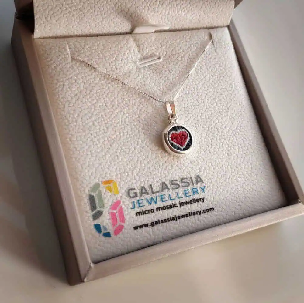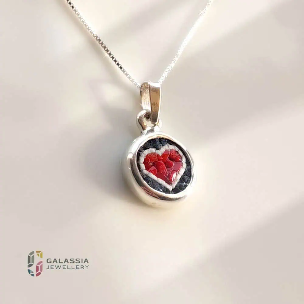 Experience the beauty of love with this Handmade Micro Mosaic Love hearts pendant , crafted using natural stones and smalti glass . Framed in 925 sterling silver, this Love hearts pendant symbolizes love strength. Each piece is meticulously handcrafted, insuring a unique and meaningful jewelry that blends artistic craftsmanship with deep meaning.