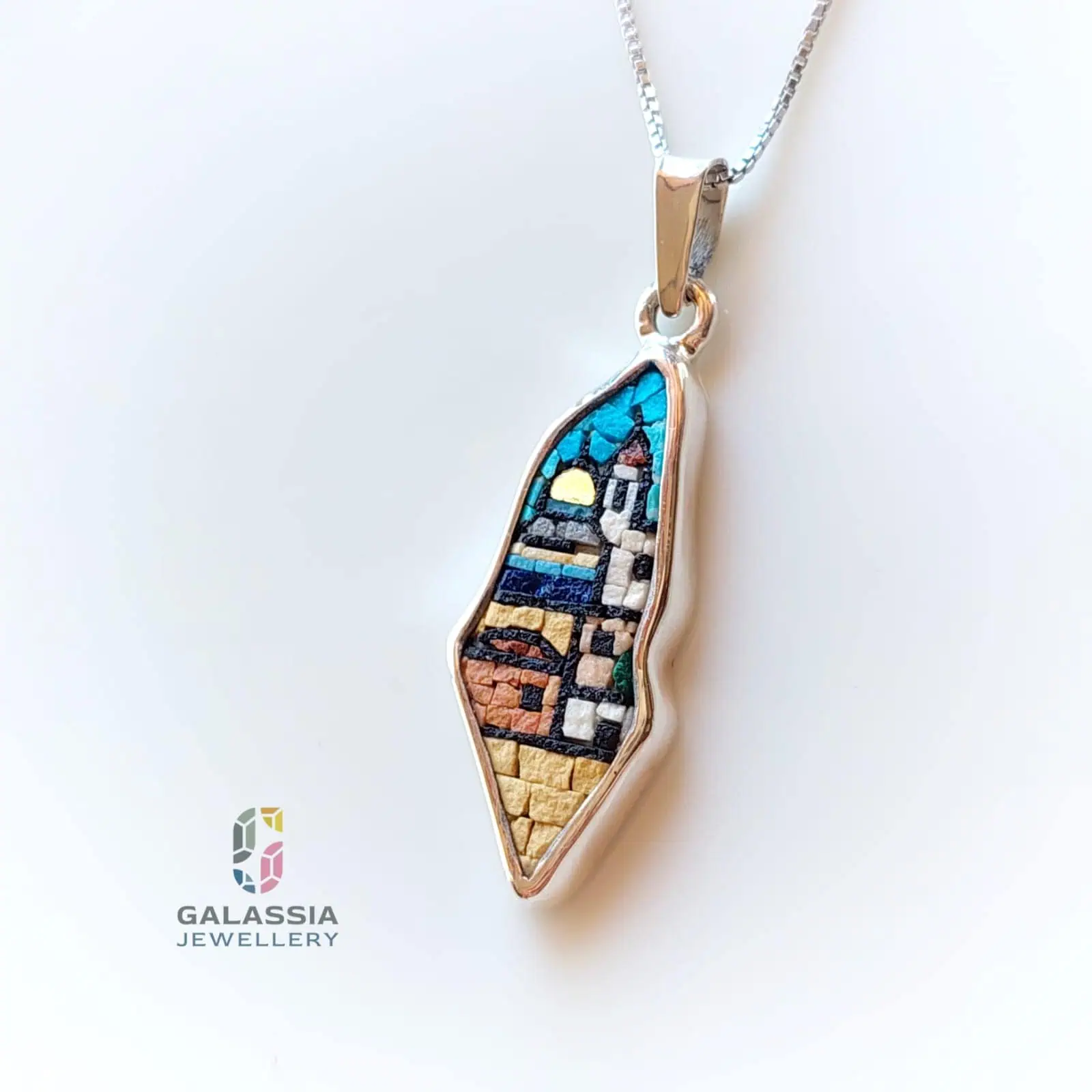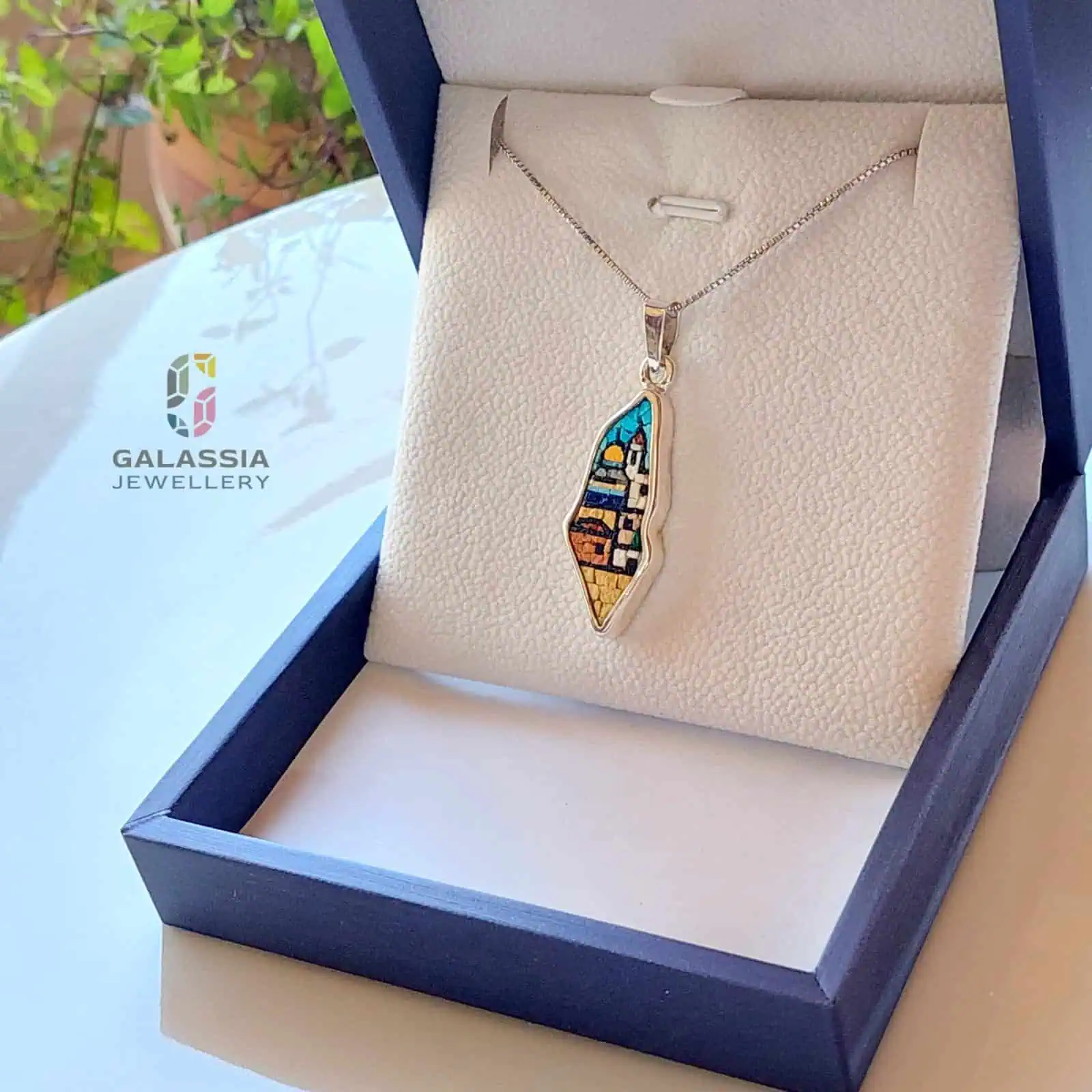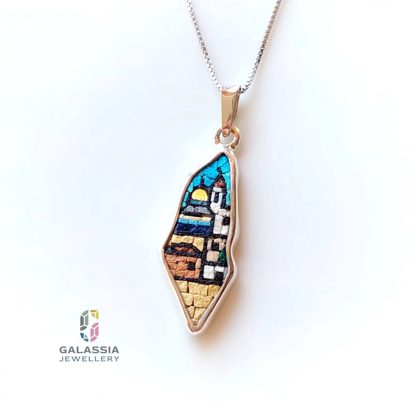 Map of Palestine Micro Mosaic Jerusalem Old CityNecklace | Handmade Art