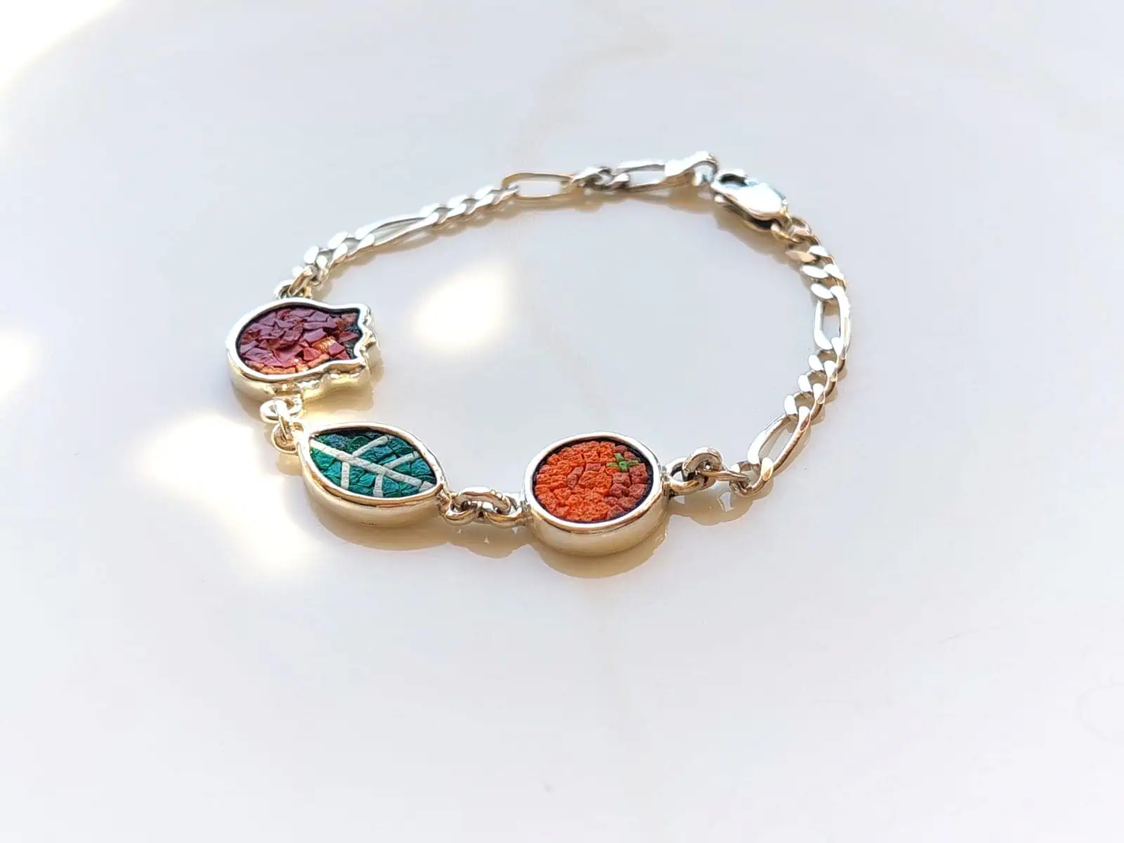 Our micro-mosaic pieces are crafted by stacking stones tightly without gaps, using a specialized adhesive, and securing them in a silver frame for extra durability.