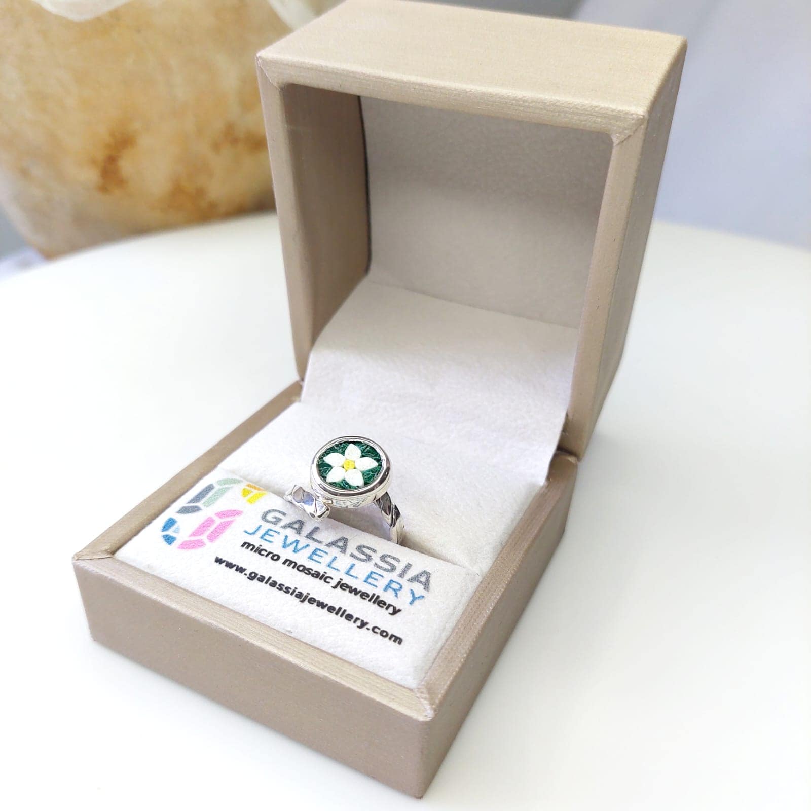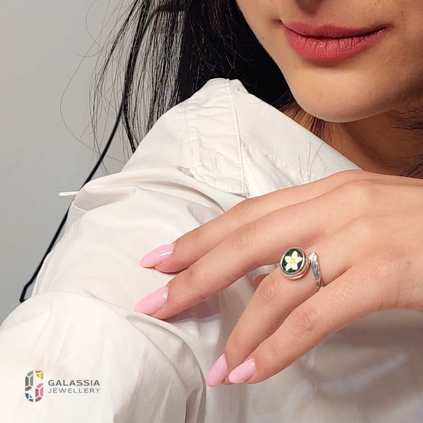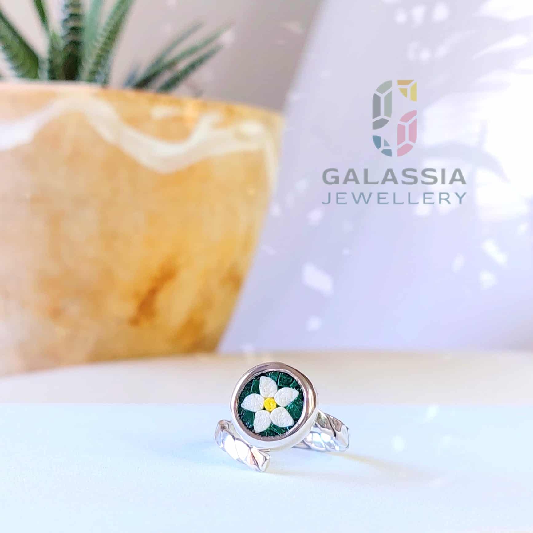 Embrace the beauty of nature with our Handmade Narcissus Flower Micro Mosaic Ring. Inspired by the delicate mountain flowers that bloom between the rocks, this stunning Ring reflect both strength and elegance.