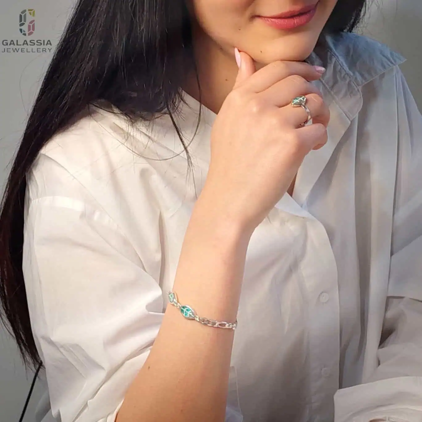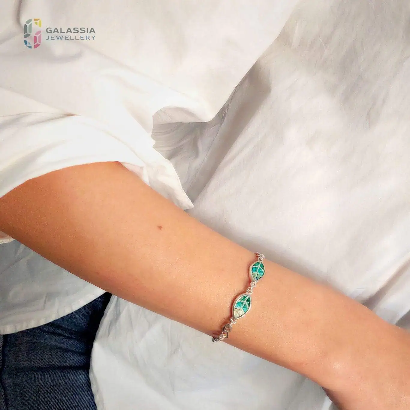 Olive Leaf Bracelets 925 Sterling Silver Micro Mosaic