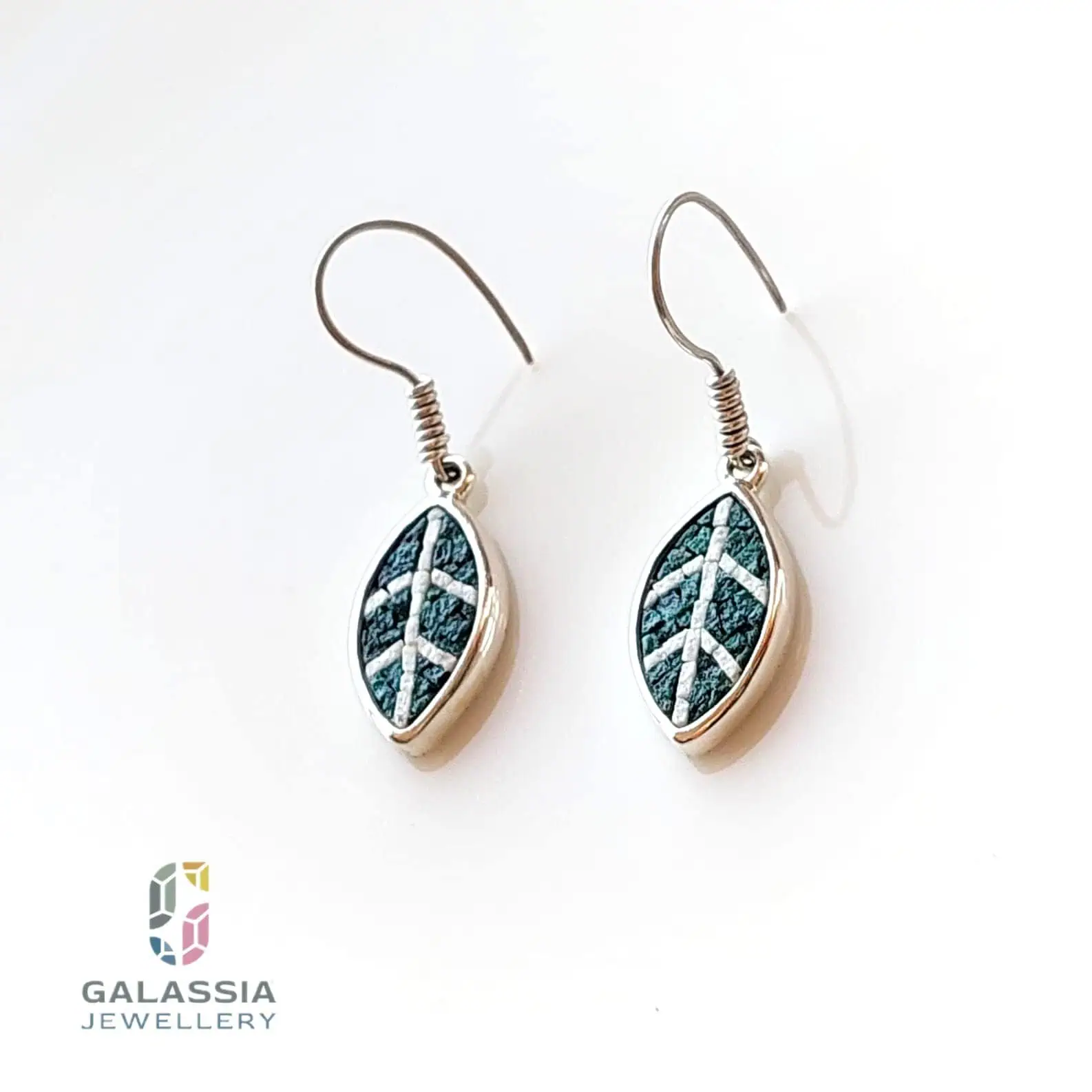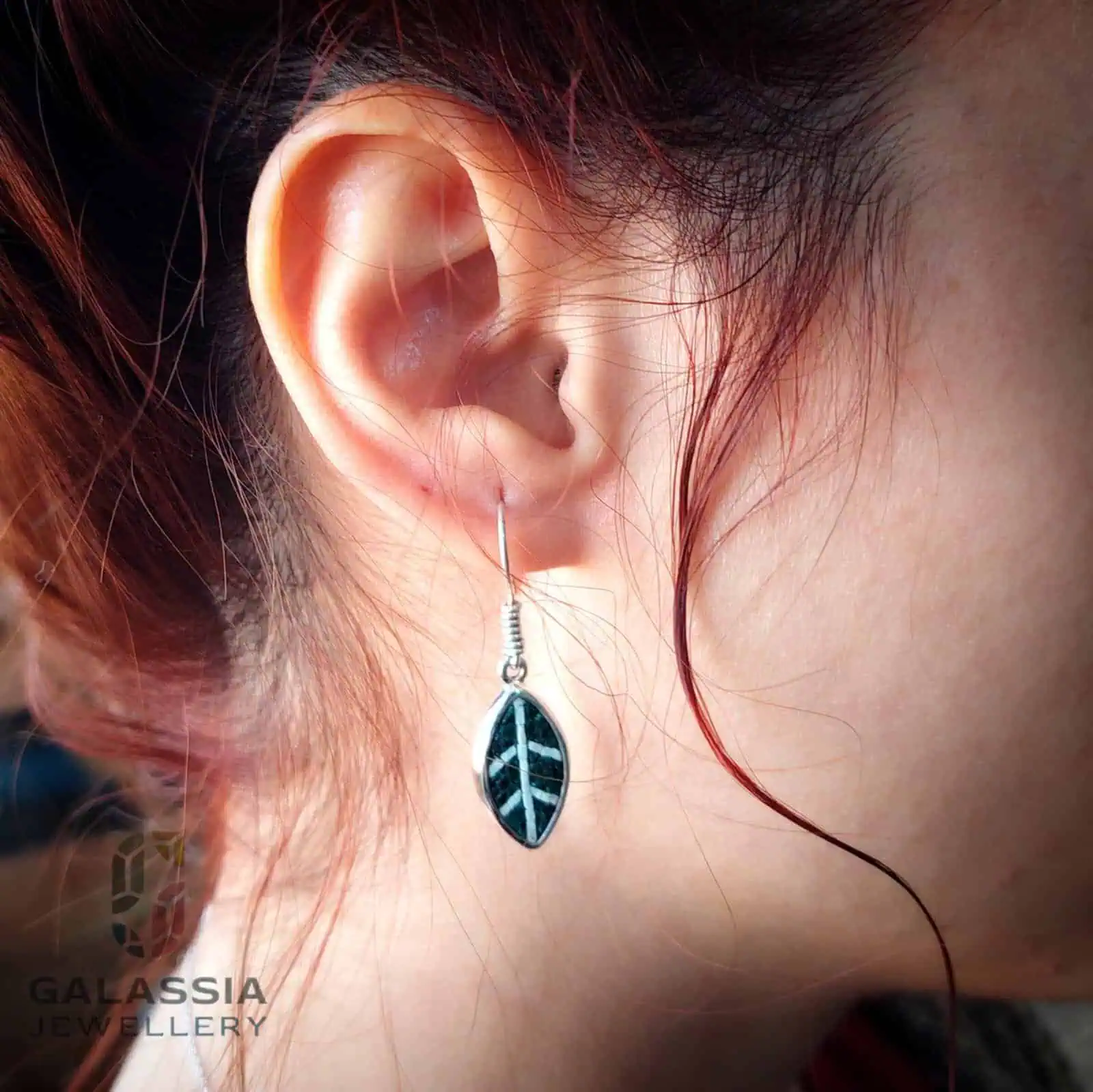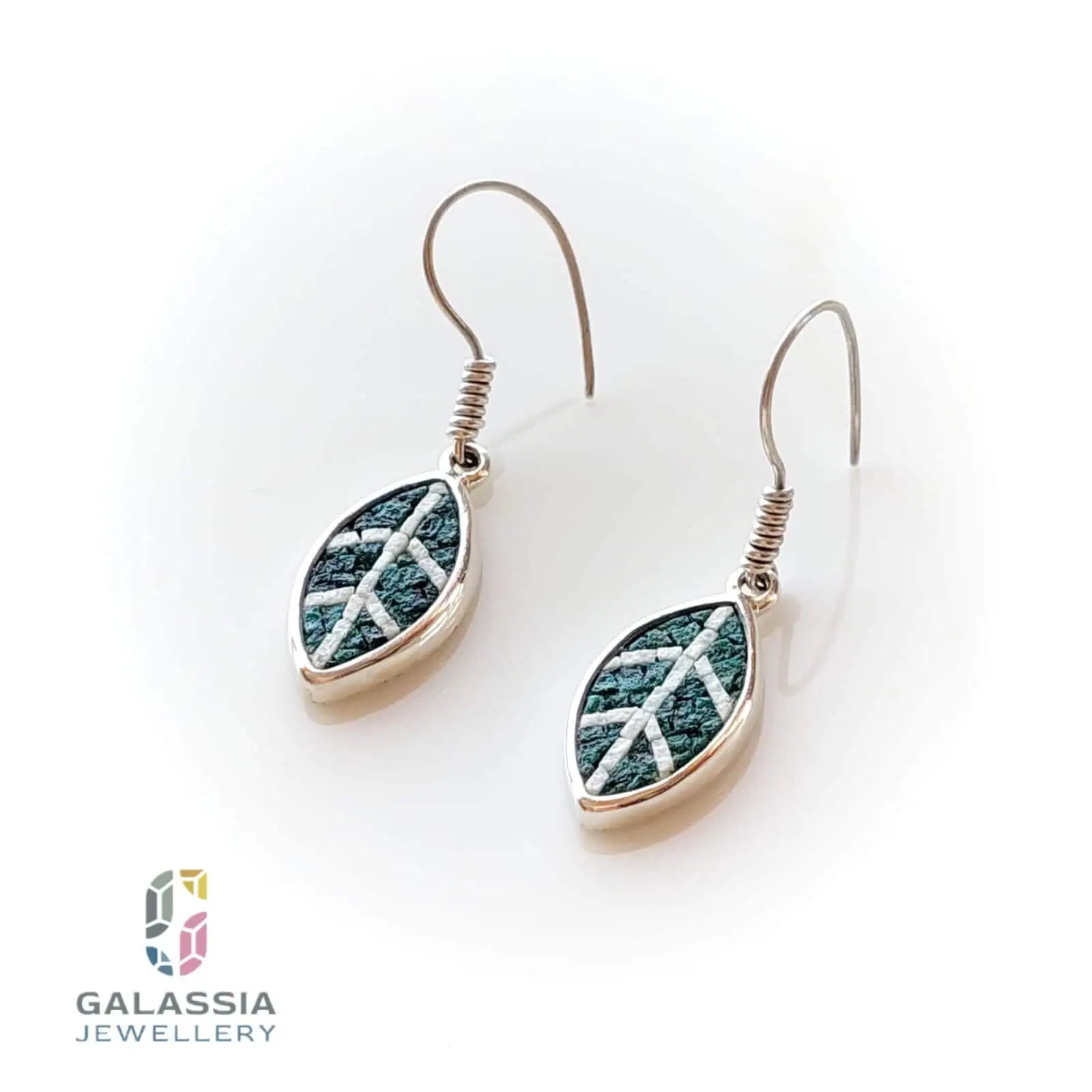 “Earrings inspired by olive tree leaves, a symbol of peace and deep connection to Palestine. Meticulously crafted with fine micro-mosaic and natural malachite stone, using 925 sterling silver. A piece that combines elegance and meaning.”