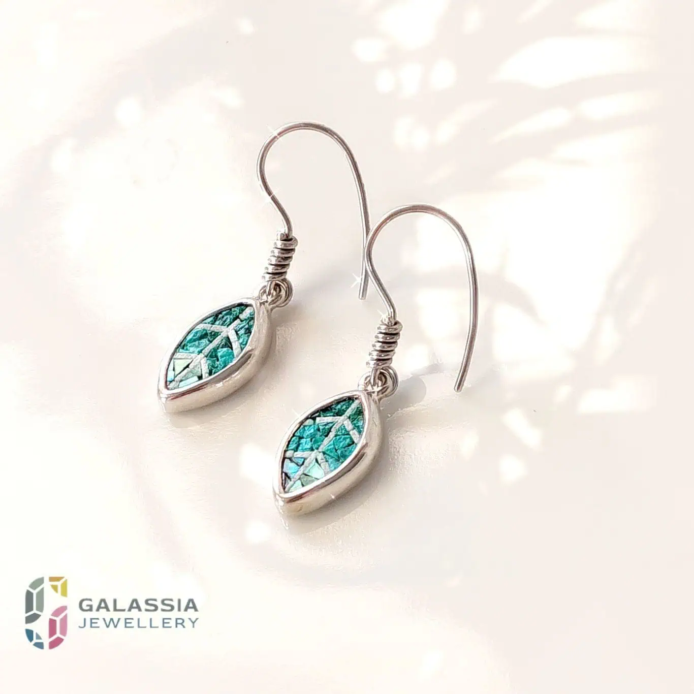 Olive Leaf Jewelry 925 Sterling Silver Micro Mosaic Earrings