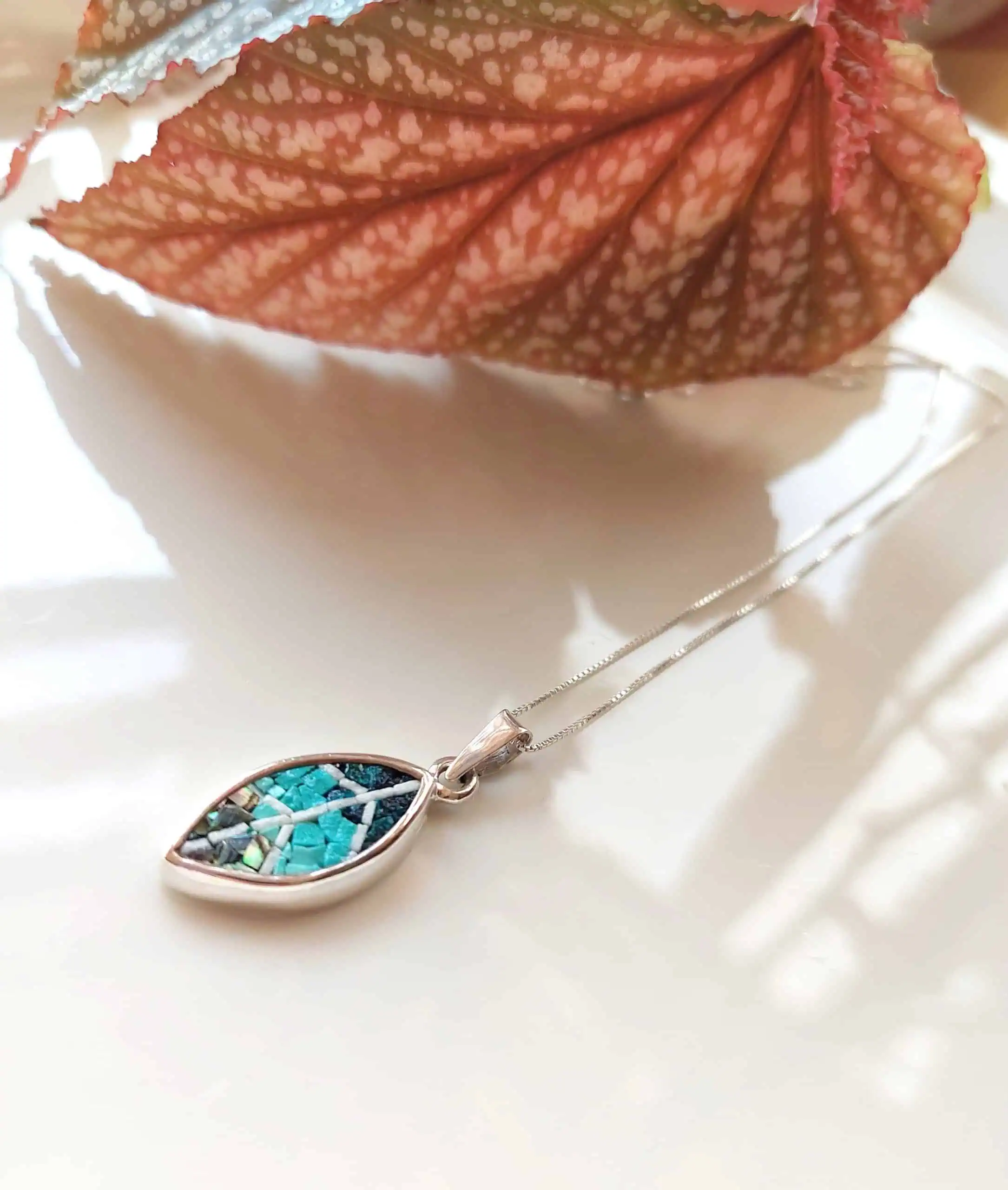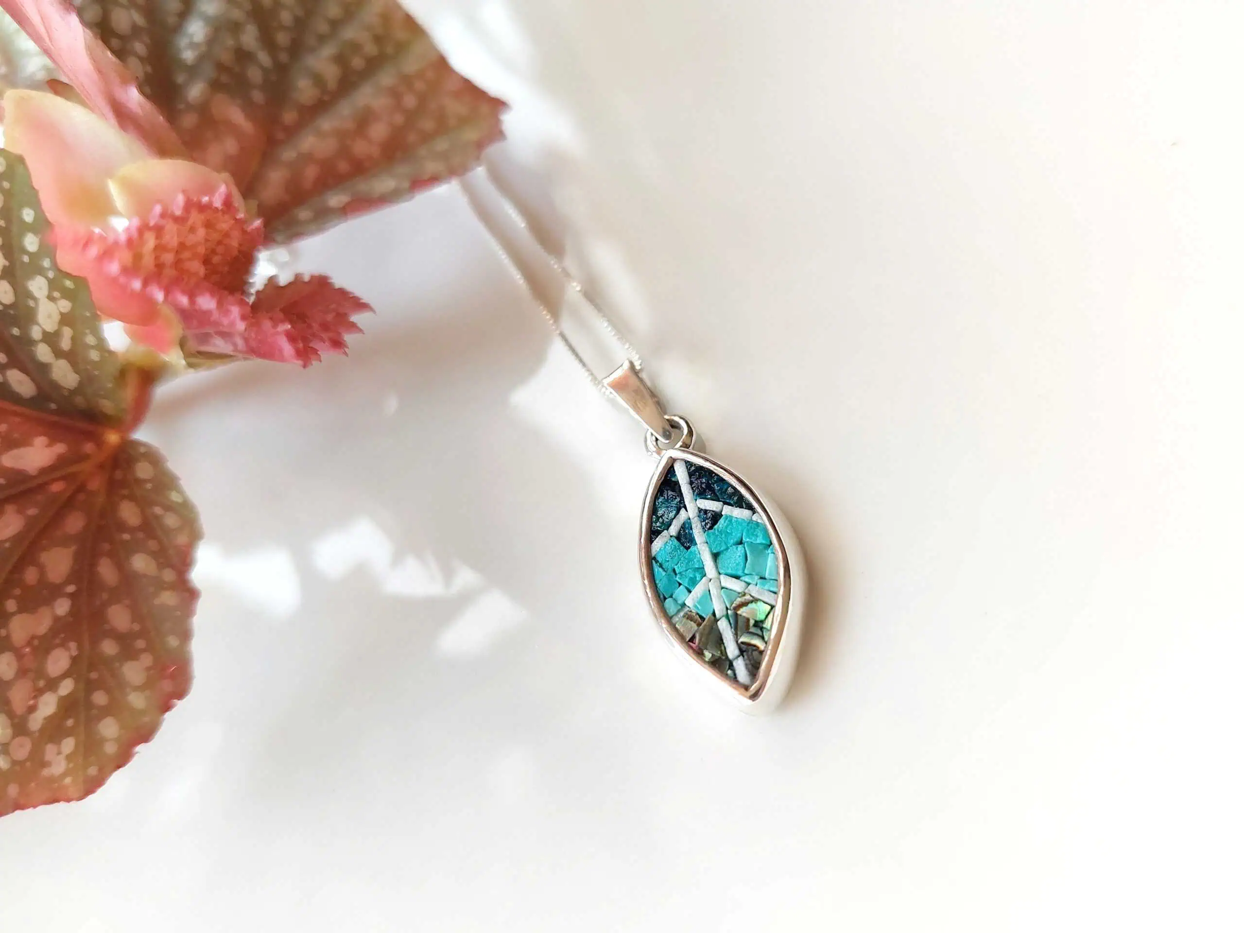 Our micro-mosaic pieces are crafted by stacking stones tightly without gaps, using a specialized adhesive, and securing them in a silver frame for extra durability.