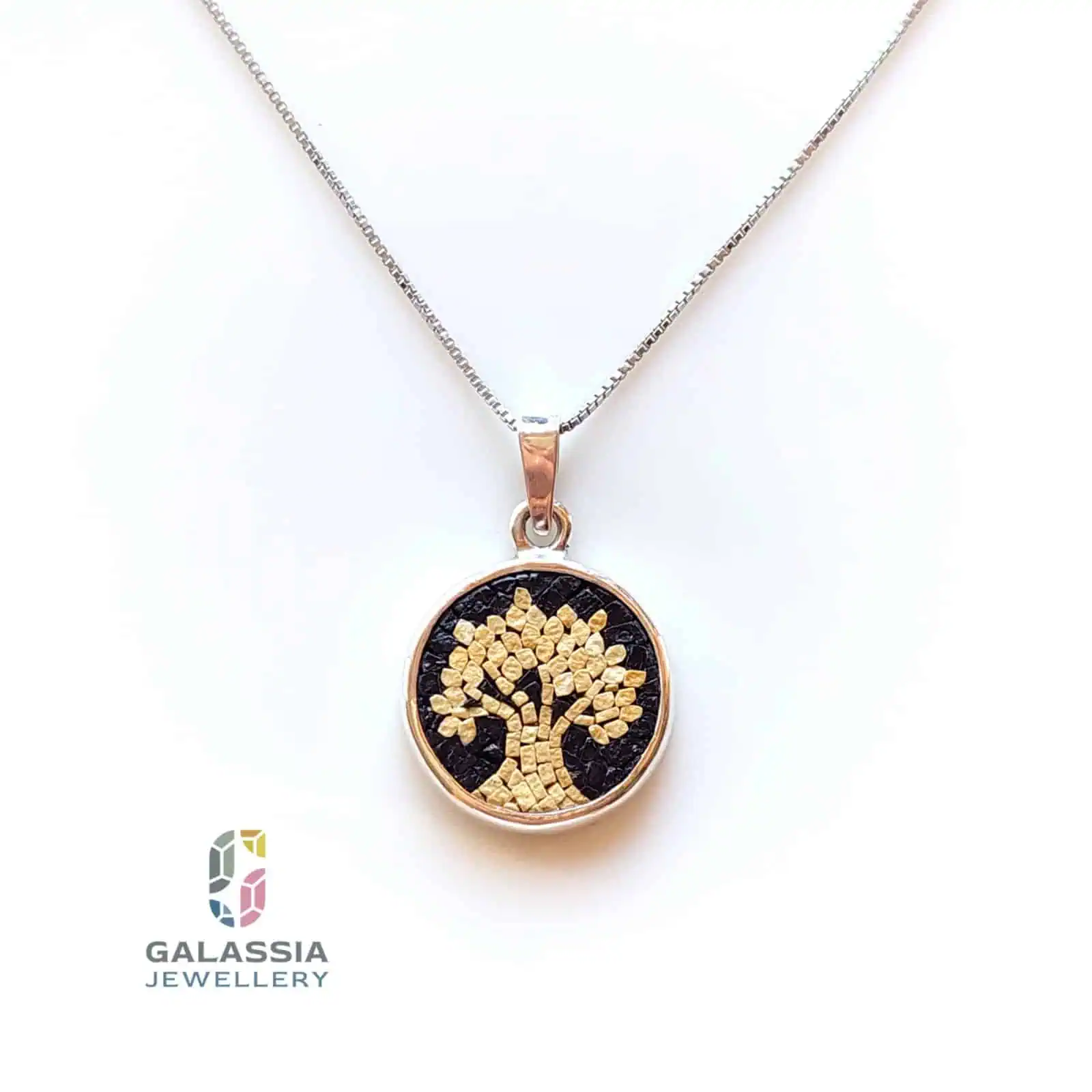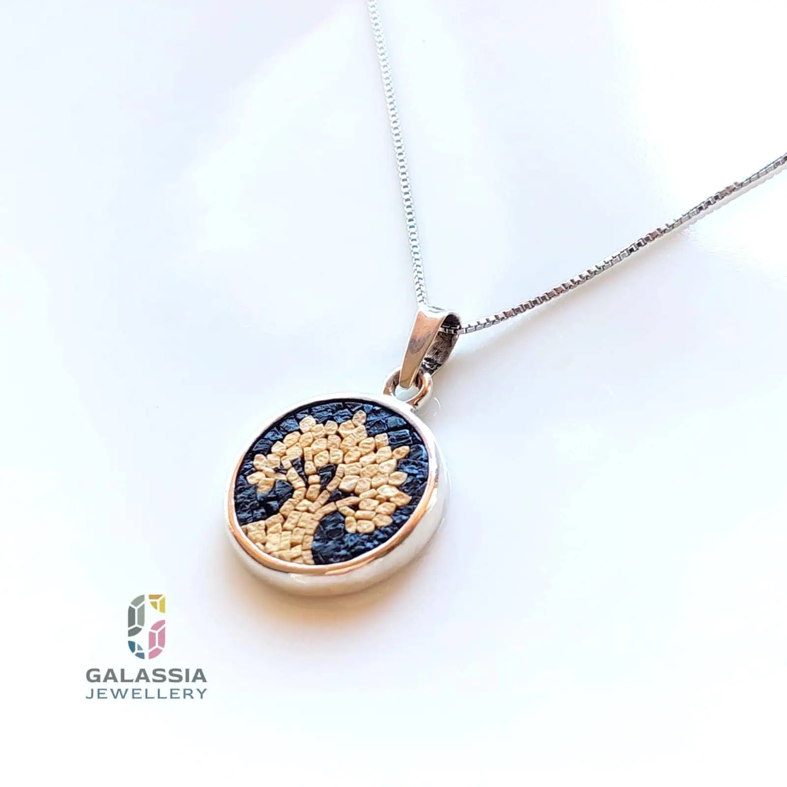 Olive Tree Micro Mosaic Necklace in Black Handmade Sterling Silver