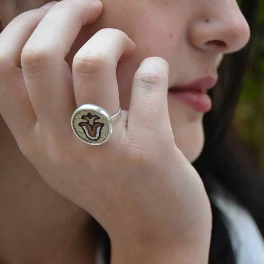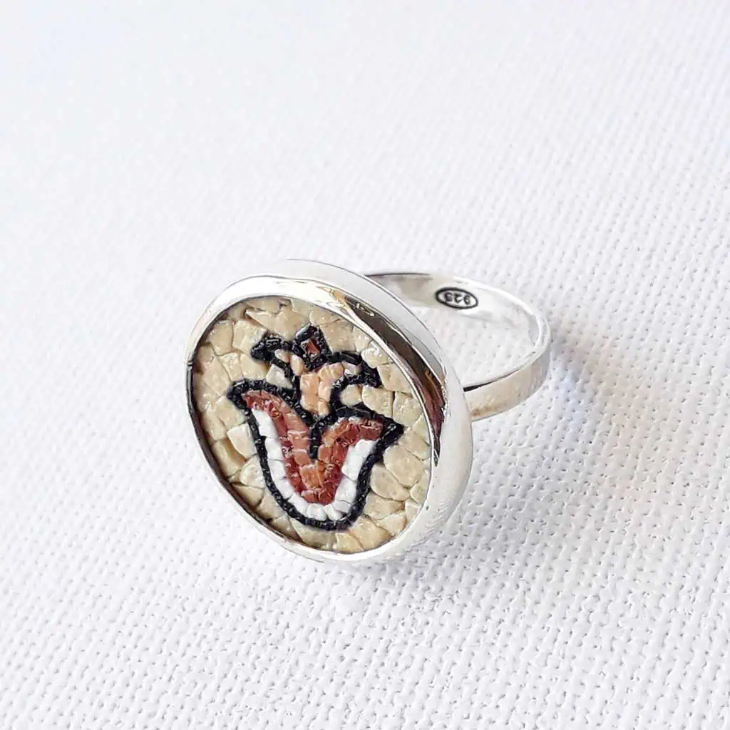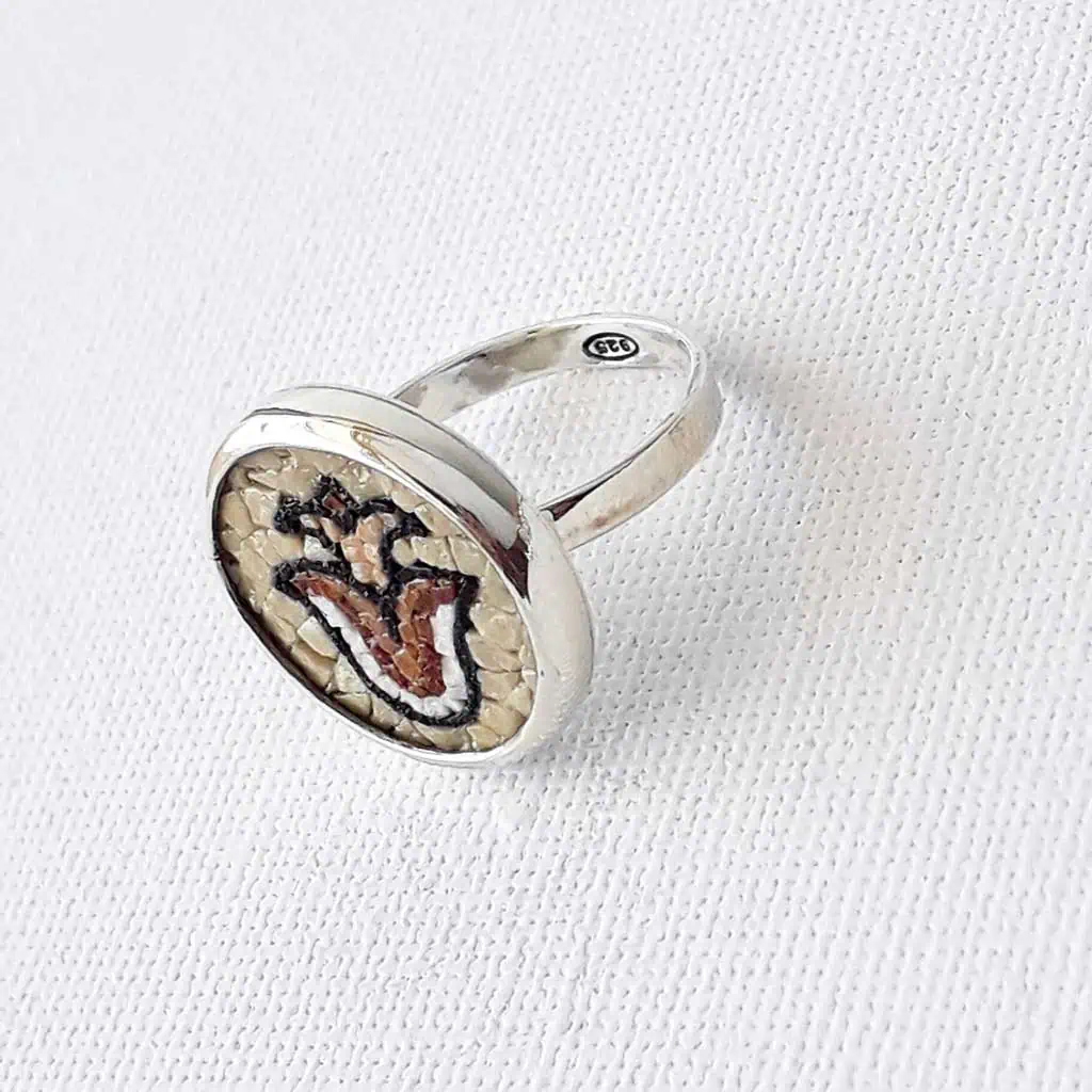Petal ring, deep love, micro mosaic, natural stone and silver, handmade and unique, water proof