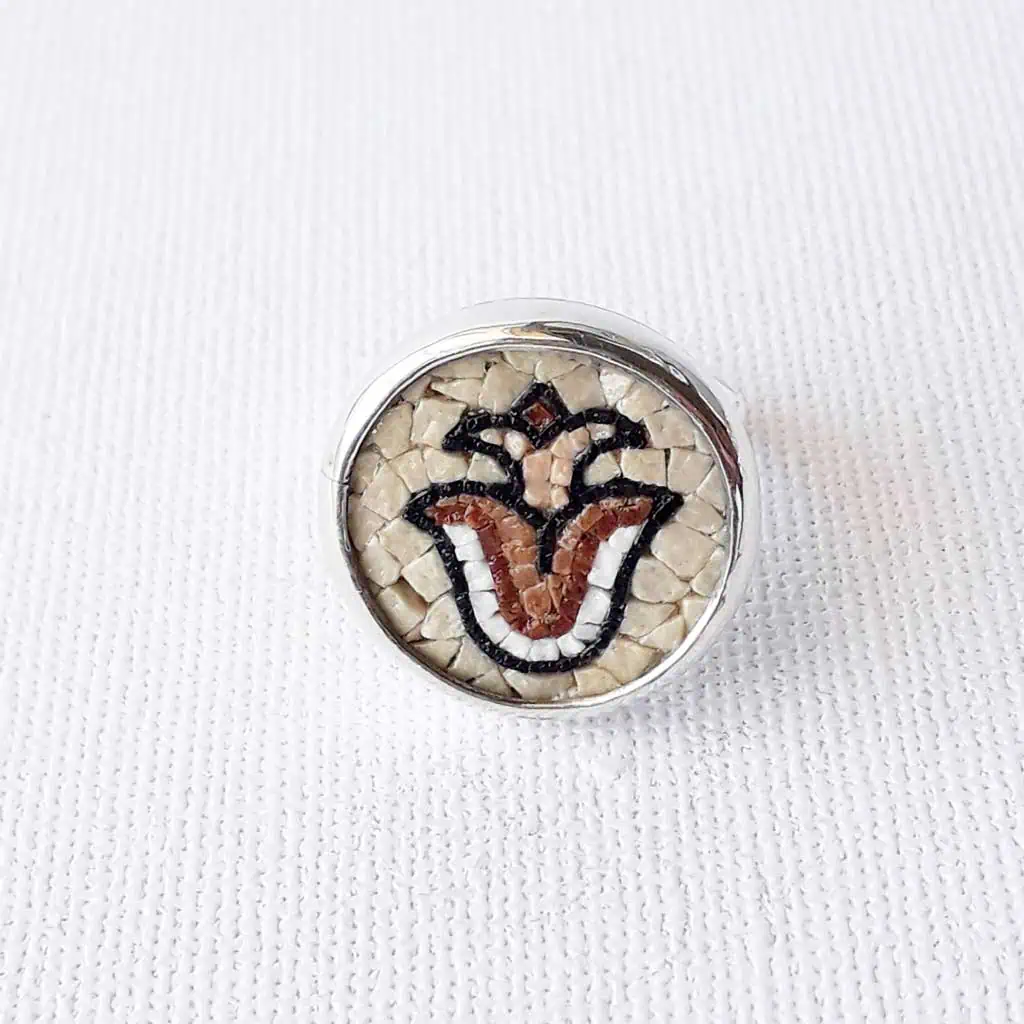 Our micro-mosaic pieces are crafted by stacking stones tightly without gaps, using a specialized adhesive, and securing them in a silver frame for extra durability.