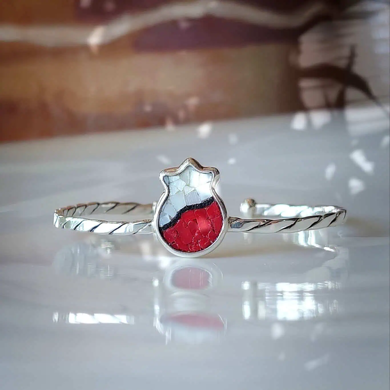 Embrace the beauty of nature with our Handmade pomegranate Micro Mosaic Bracelet. Inspired by the ancient mosaic floor and Nature in Palestine , this stunning pomegranate bracelet reflect rebirth and fertility.
