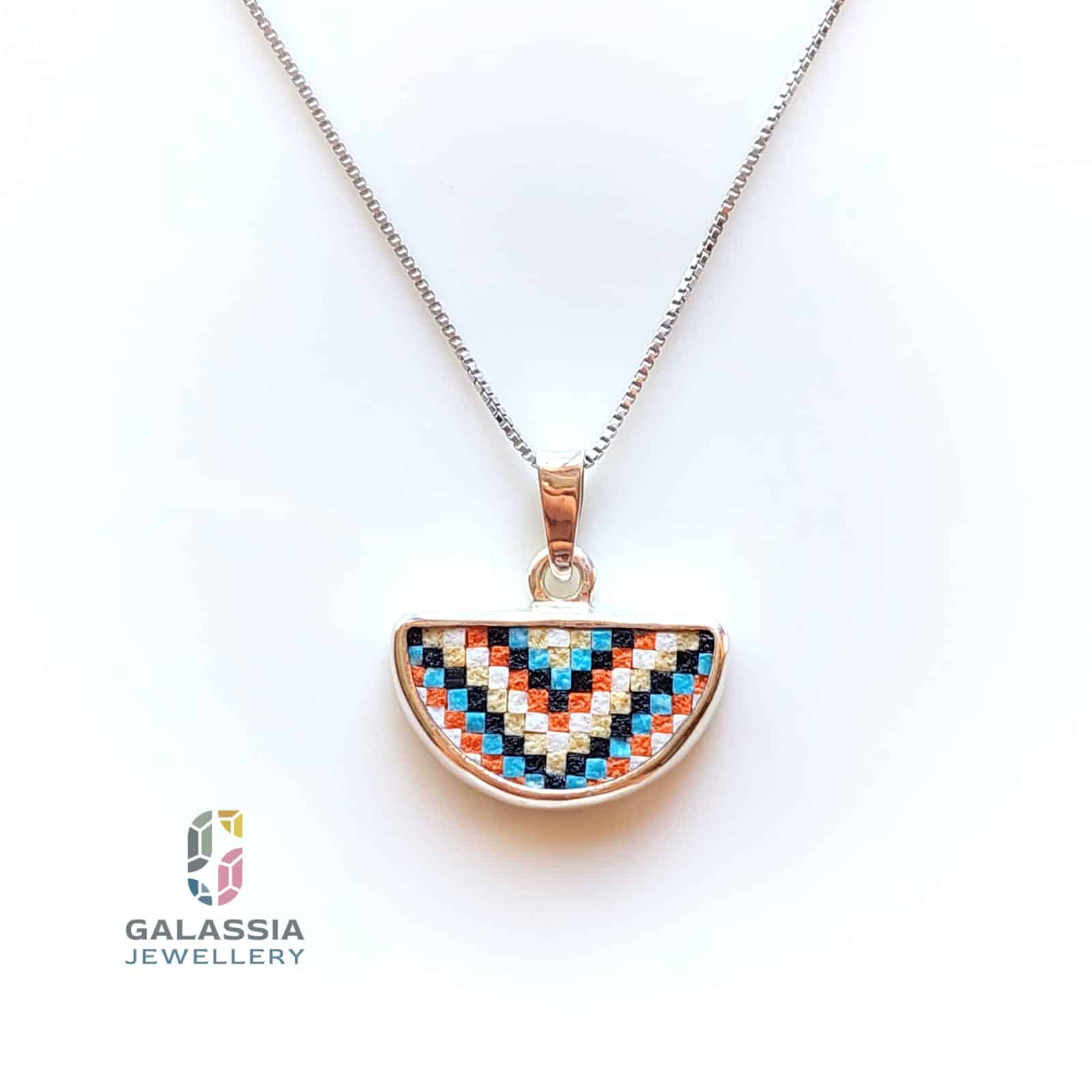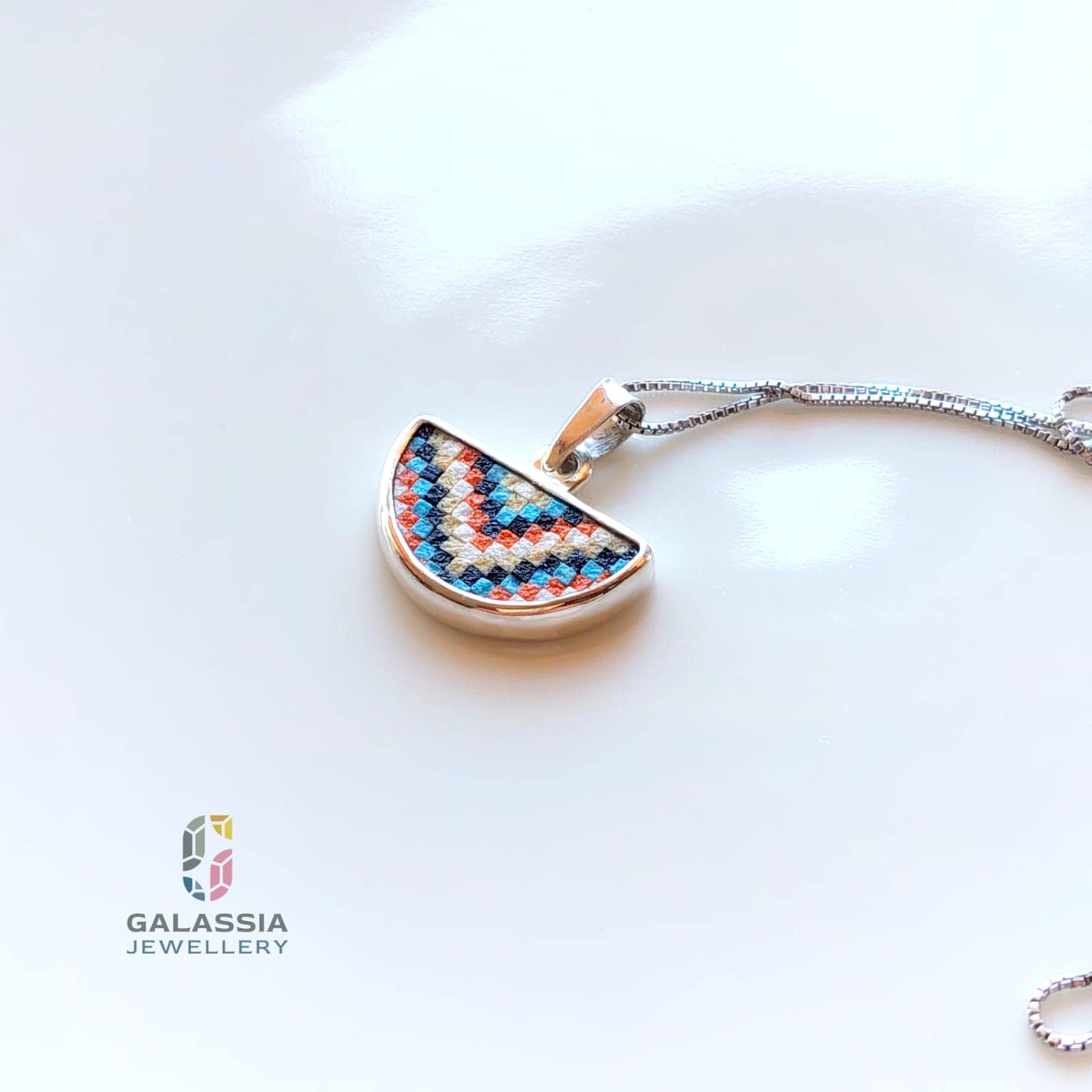 This jewellery design was inspired by the floor of Hisham’s Palace in the city of Jericho in Palestine, which is the largest mosaic floor in Palestine and dates back to the Umayyad era.