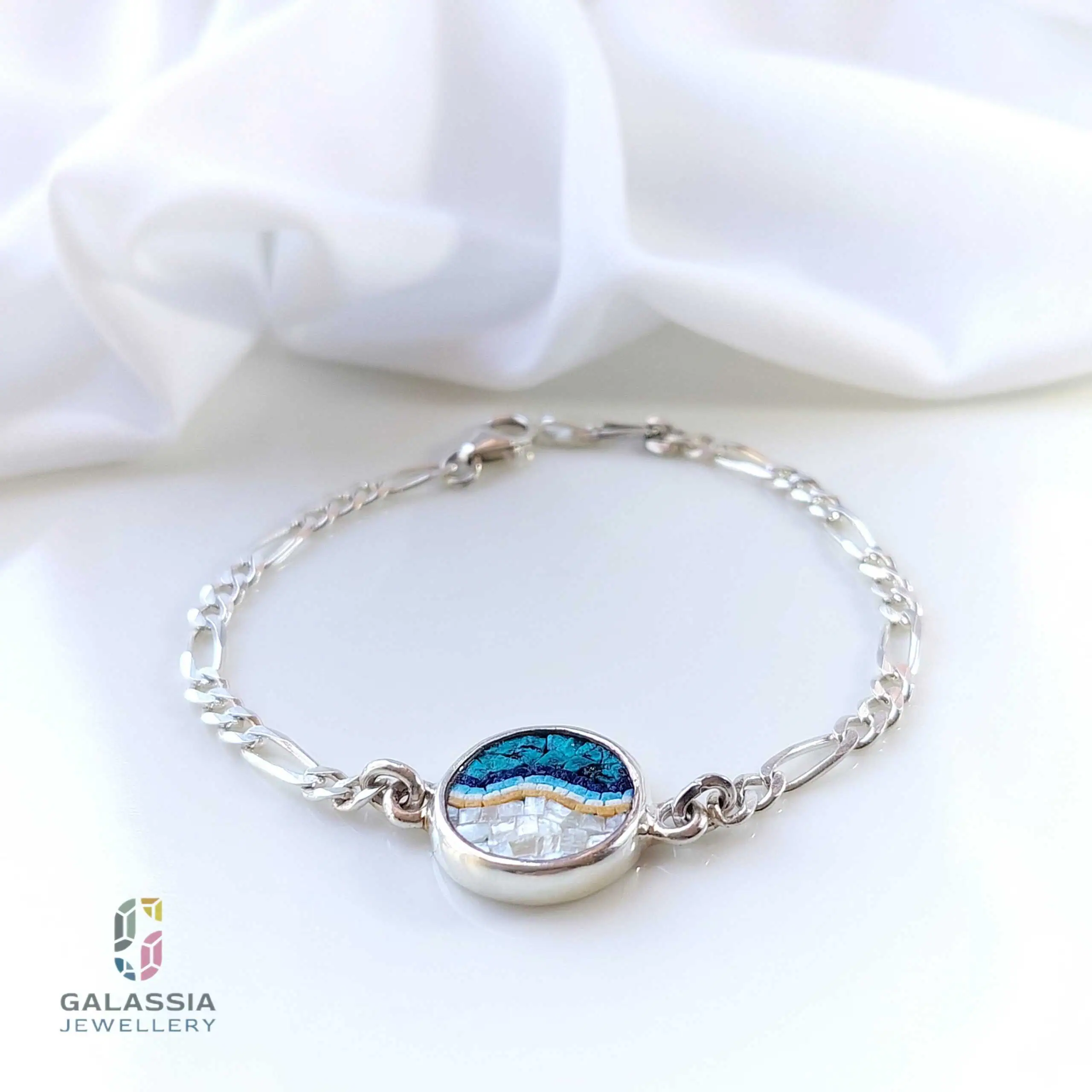Discover the unique artistry of Galassia Jewellery with this extraordinary bracelet. Meticulously handcrafted, this piece showcases the exceptional micro-mosaic technique, reflecting creativity and precision in every intricate detail. The bracelet combines the stunning patterns of micro-mosaic with the natural shimmer of white shells creating a perfect harmony between timeless elegance and modern flair.