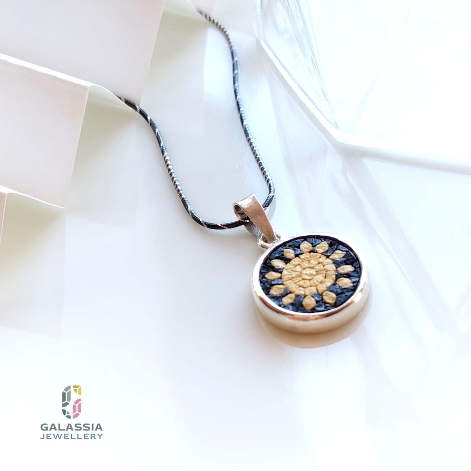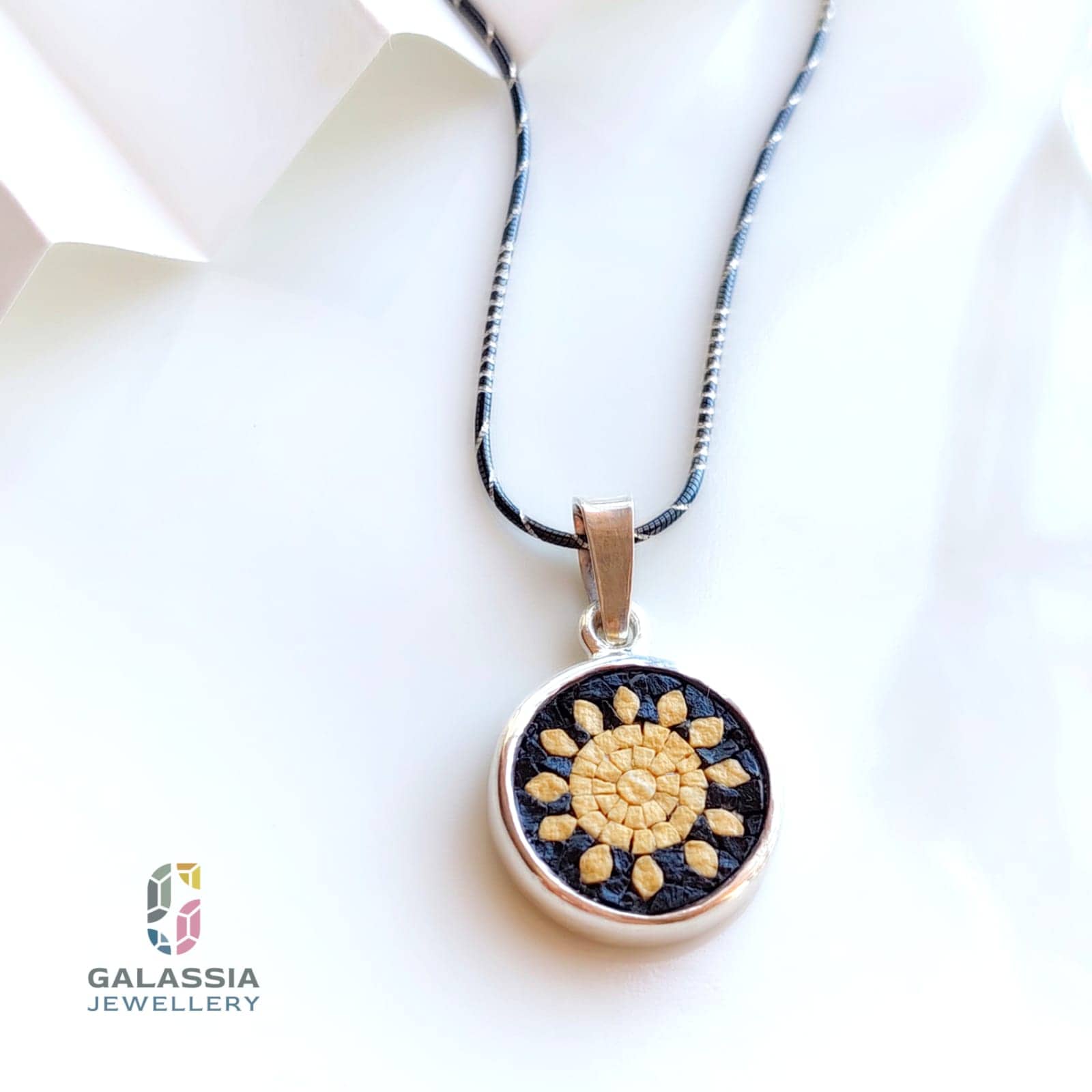 The Galassia Jewellery Sun piece is a stunning masterpiece that captures the brilliance of the sun and the beauty of nature. Expertly crafted from 925 sterling silver and intricate micro-mosaic work, this unique piece reflects the radiant glow of the sun’s rays through its finely detailed design. Each element of this jewelry tells a story of light and energy, embodying the elegance and craftsmanship that Galassia Jewellery is known for. The Sun piece is more than just jewellery; it’s a symbol of inner strength and optimism, designed to shine brightly and elevate any style.