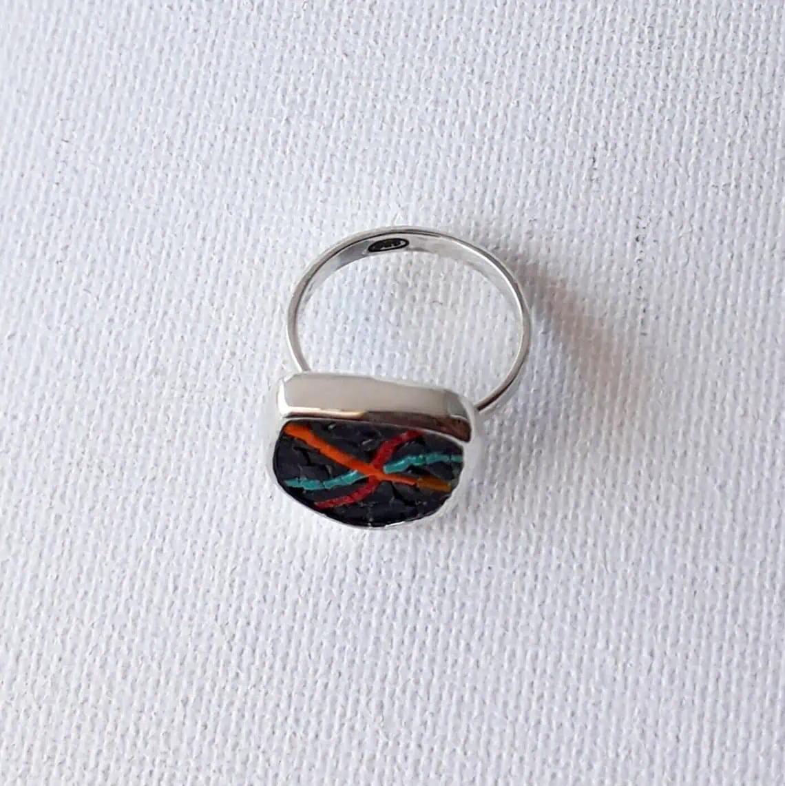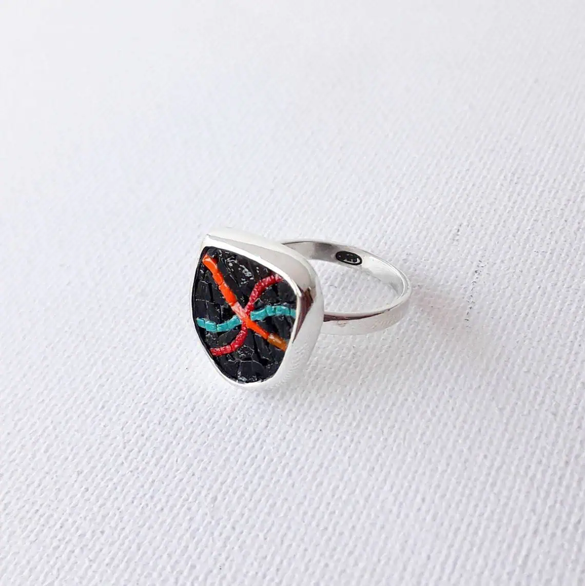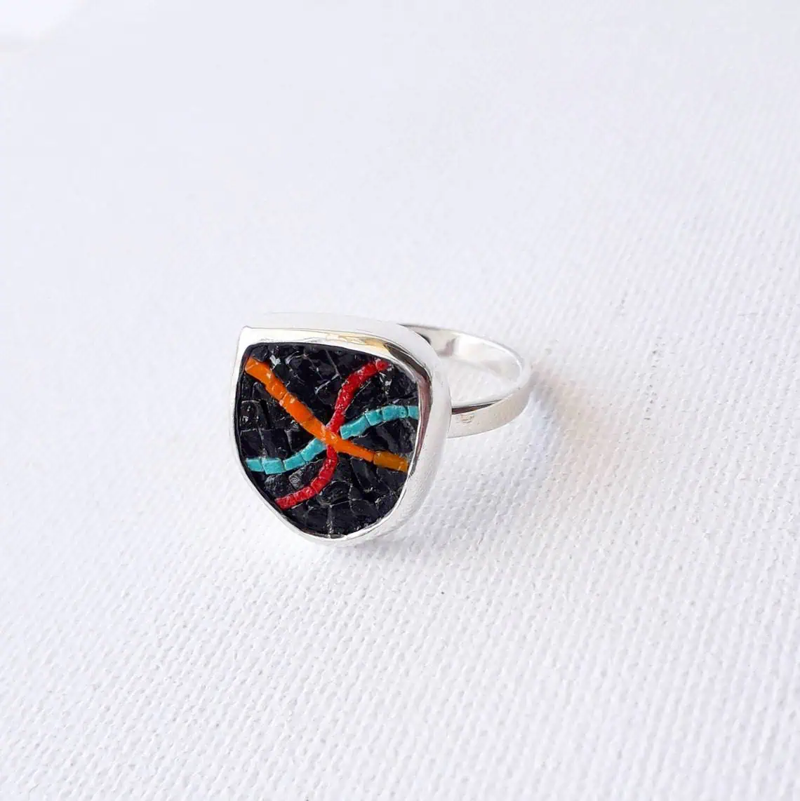 Threads of hope in the dark, ring , micro mosaic ,contemporary art, sterling silver 925, handmade, water proof