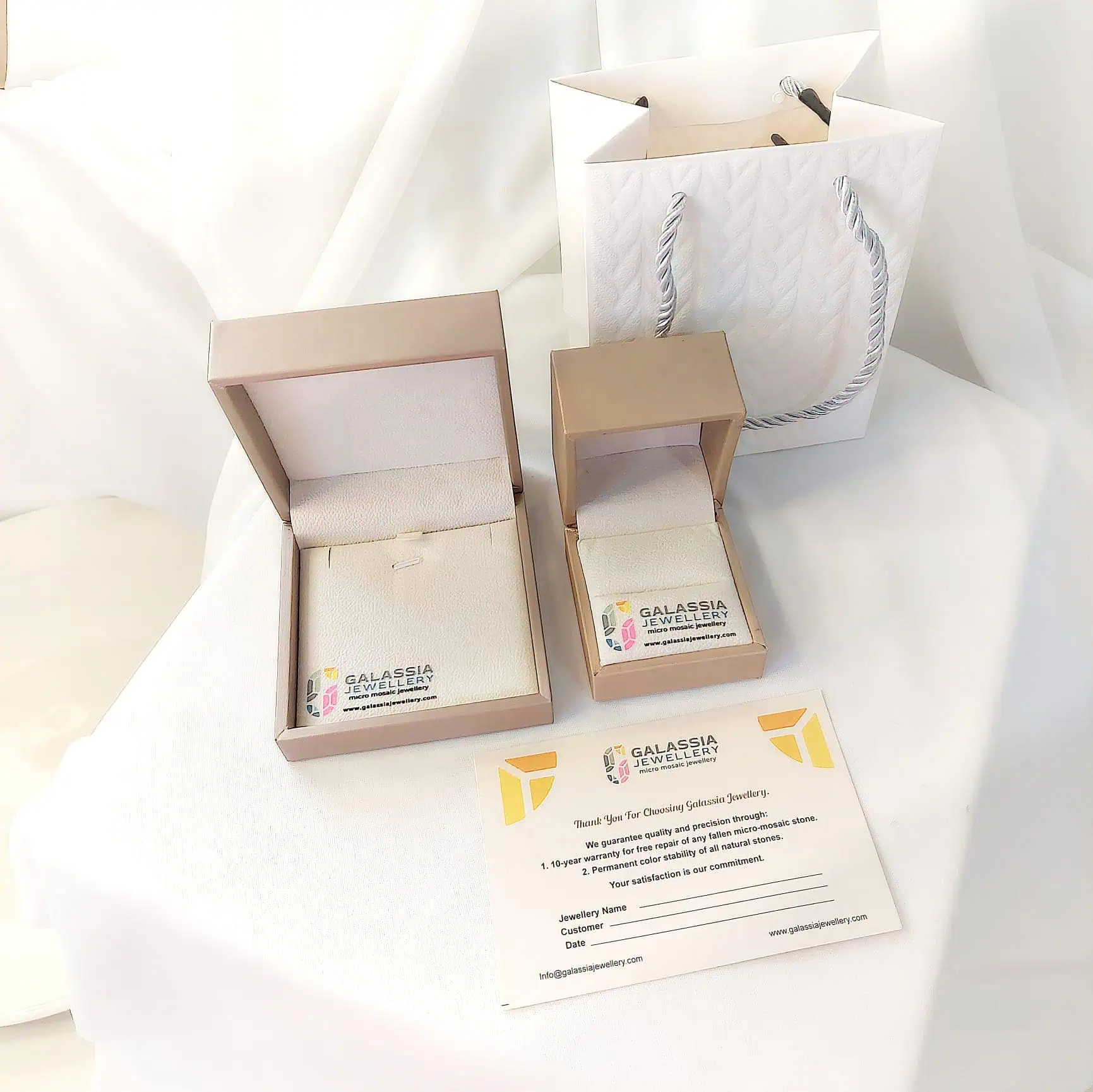 Our micro-mosaic pieces are crafted by stacking stones tightly without gaps, using a specialized adhesive, and securing them in a silver frame for extra durability.