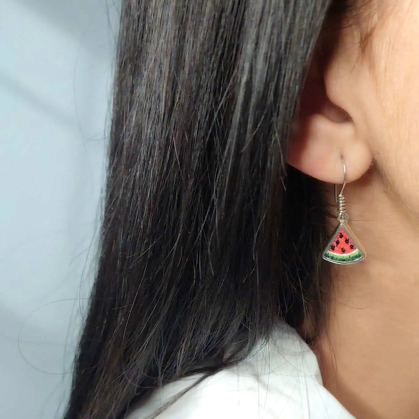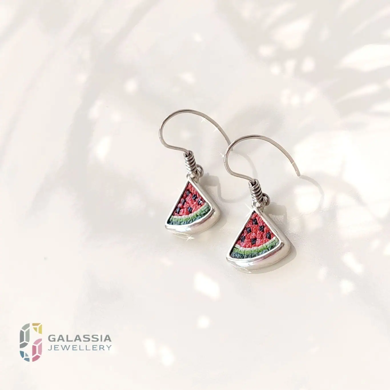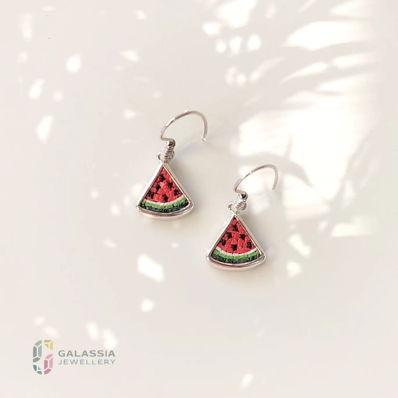 watermelon earrings – A Symbol of Palestinian Heritage in Micro-Mosaic Art. This earrings embodies the spirit of heritage and resistance through a unique design that blends artistic beauty with deep cultural significance.