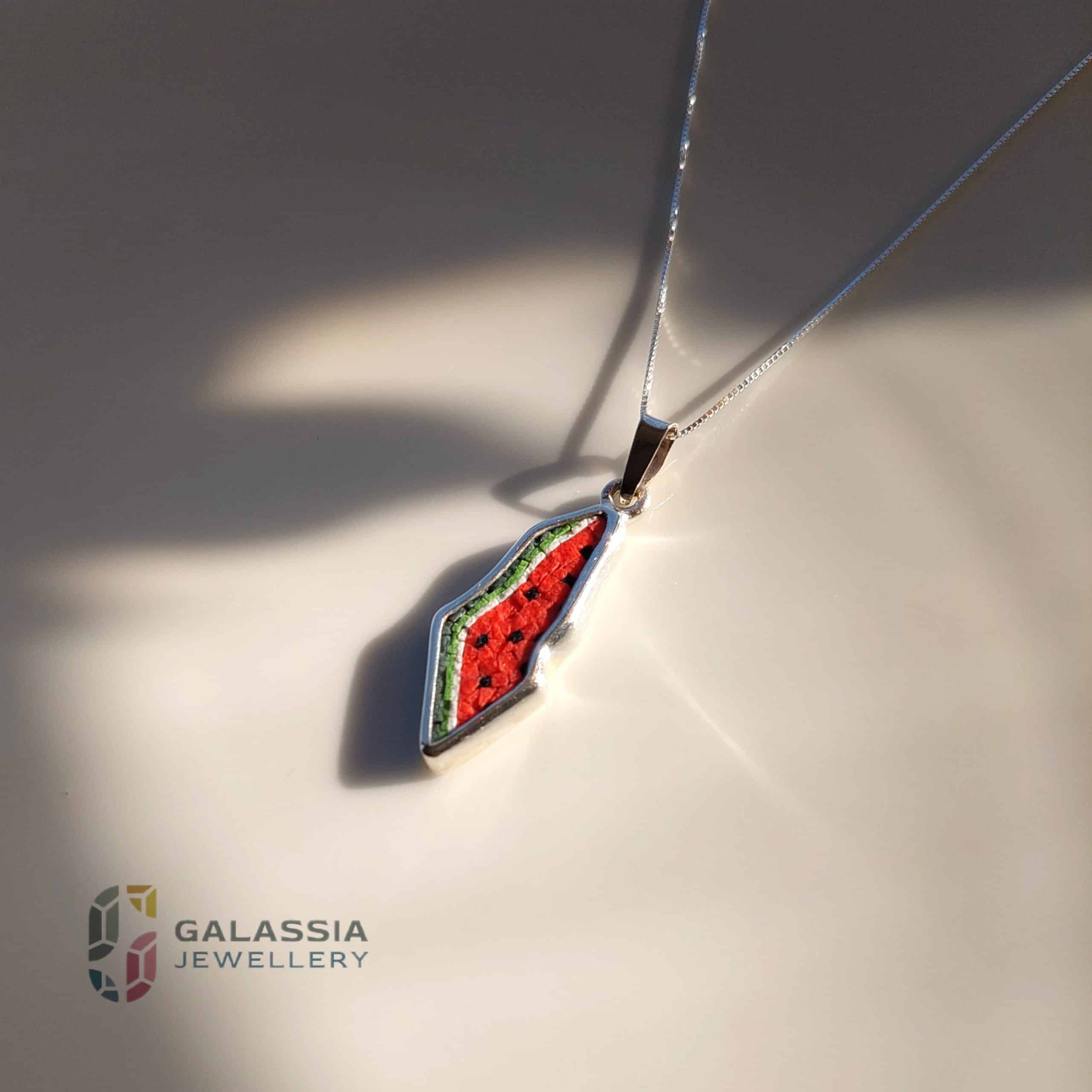 watermelon map pendant – A Symbol of Palestinian Heritage in Micro-Mosaic Art