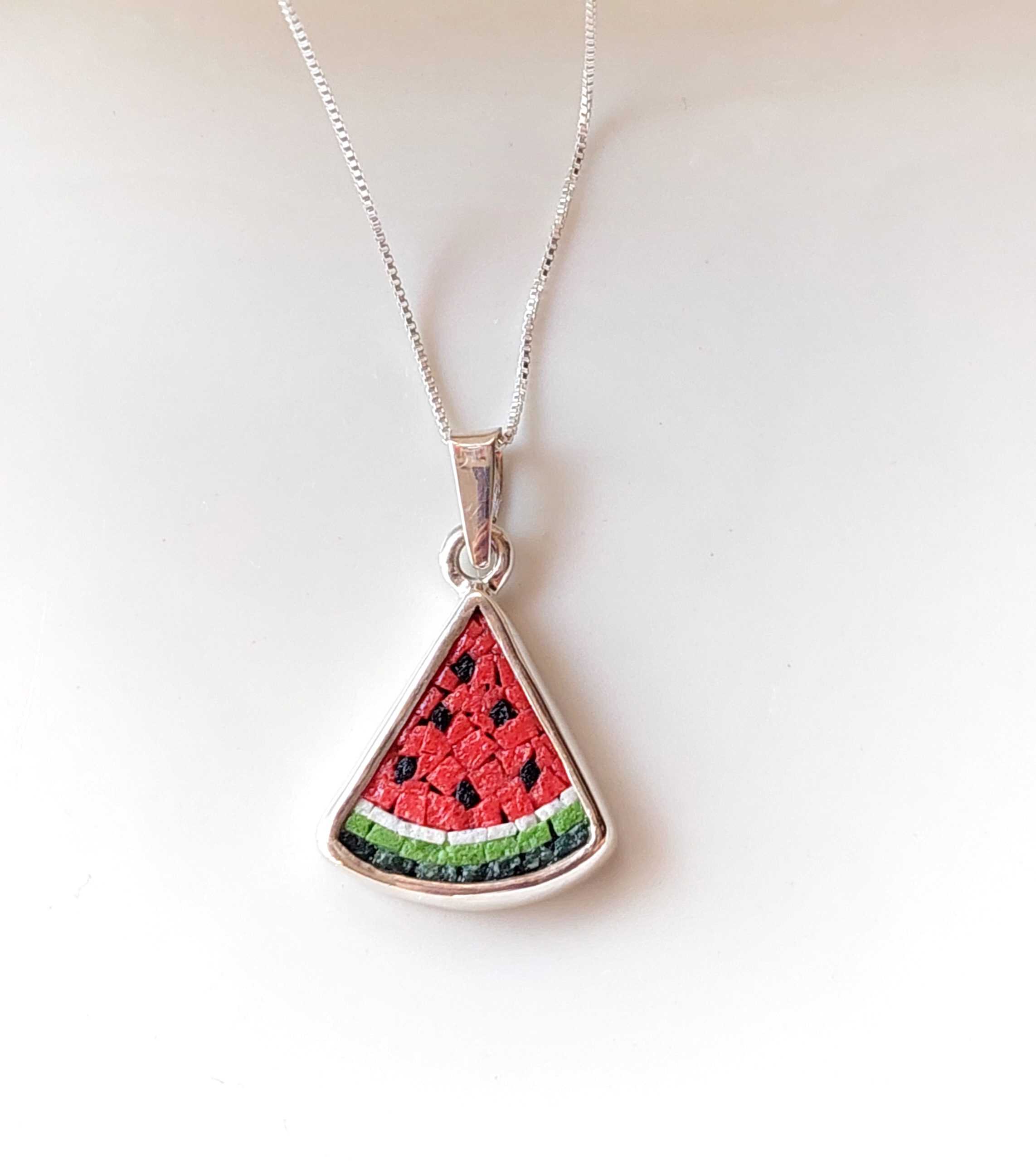Our micro-mosaic pieces are crafted by stacking stones tightly without gaps, using a specialized adhesive, and securing them in a silver frame for extra durability.